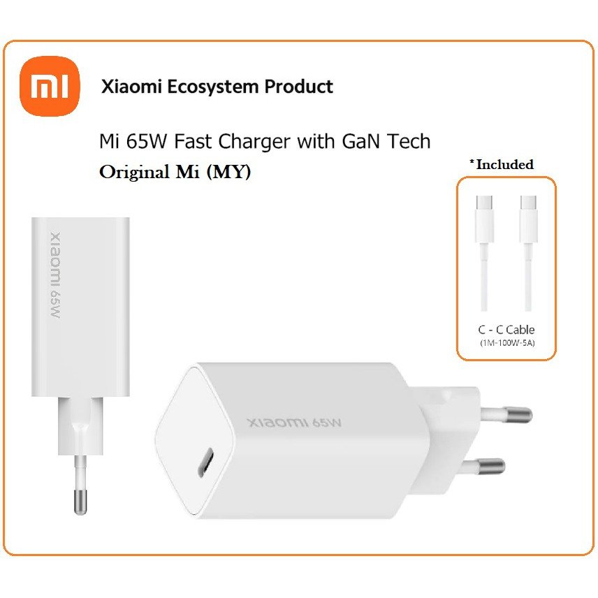 Xiaomi Mi 65W Fast Charger with GaN Tech (USB-C) – EU Plug